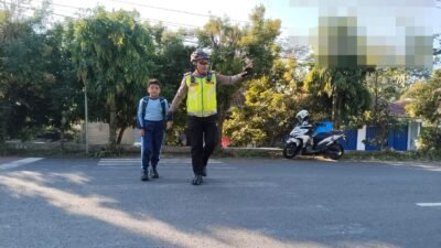 Memastikan keamanan masyarakat tersebut, personel Kepolisian tampak sigap membantu penyeberangan anak-anak sekolah, mengatur arus kendaraan dan memastikan kelancaran mobilitas di jalur tersebut.