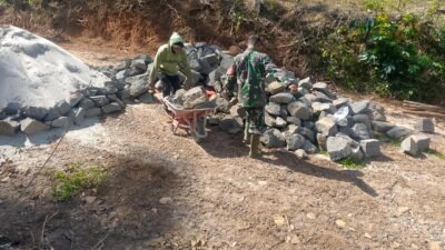 Pada hari Rabu (22/04/2026), kegiatan pembangunan difokuskan pada pengerjaan pondasi jembatan sebagai struktur utama penopang, yang saat ini telah memasuki tahap pemasangan rangka, dan penataan batu pondasi.